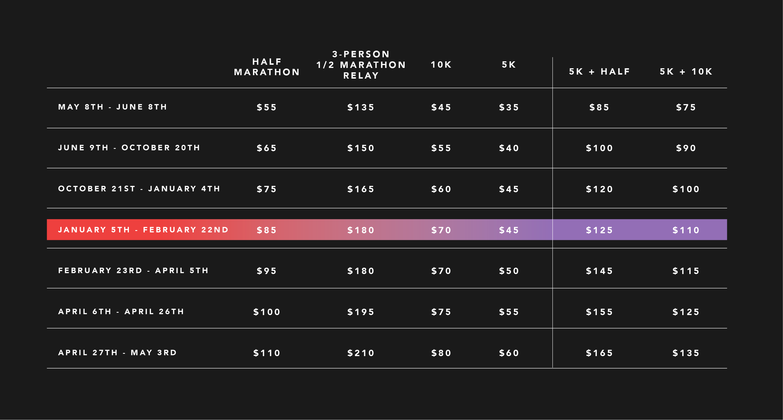 5K + HALF MARATHON or 5K + 10K